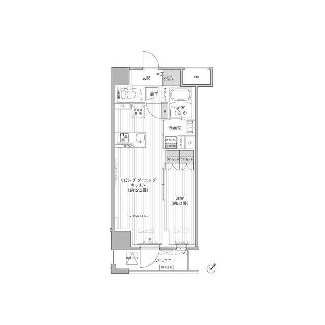 | 間取り | 1LDK(LDK12.3・洋室5.1) | 主要採光面 | 南東 |