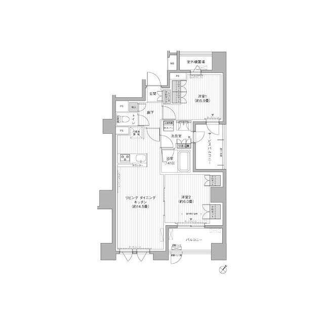 | 間取り | 2LDK(LDK14.5・洋室6・洋室5.9) | 主要採光面 | 南東 |