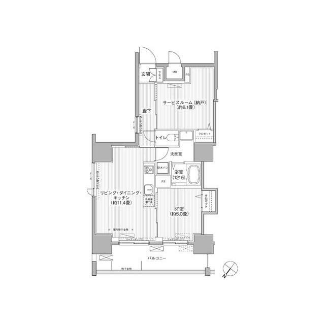 | 間取り | 1SLDK(LDK11.4・洋室5・S6.1) | 主要採光面 | 北西 |
