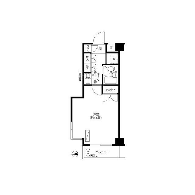 | 間取り | 1K(洋室8.6・K1.1) | 主要採光面 | 西 |